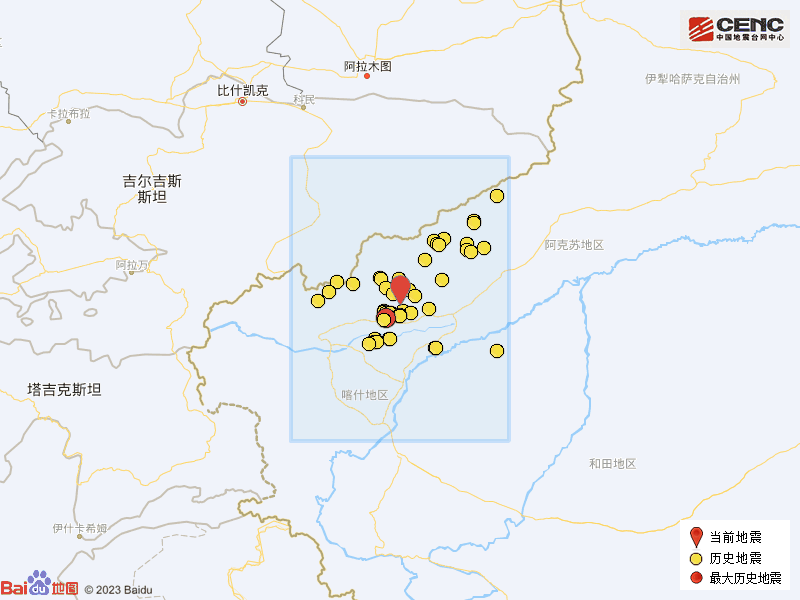 历史地震:证实中国地震台网速报目次,震中控制200公里内近5年来发生3级以上地震共206次,最地面震是2020年1月19日在新疆喀什地区伽师县发生的6.4级地震(距离本次震中41公里),按震级大小前50次历史地震散布如图。
