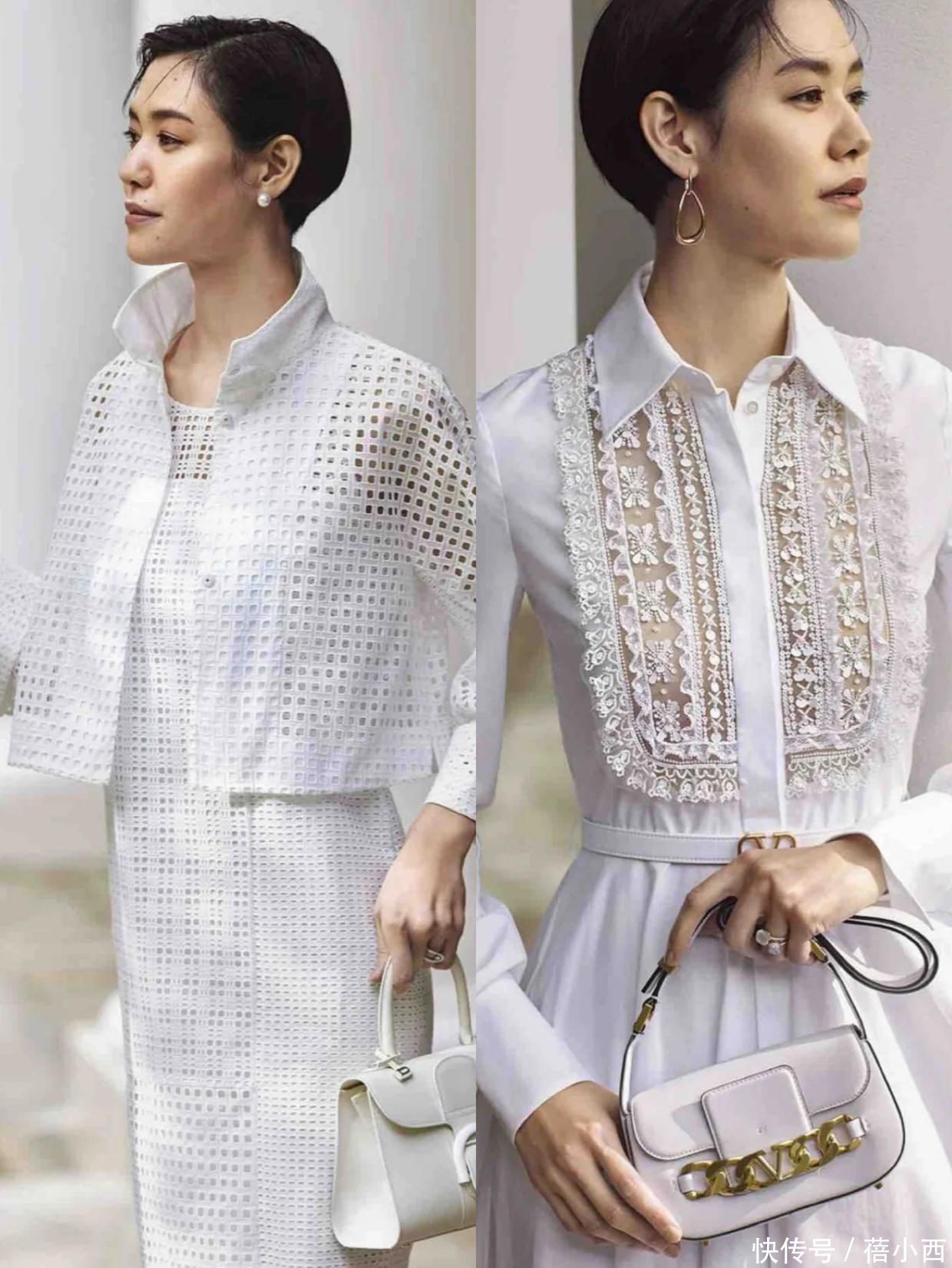 通过这些基础款服装来展现出好气质,咱们也需要好奇细节的狡计,就像这些白色的外衣,白色衬衫上头纠合镂空的剪裁。