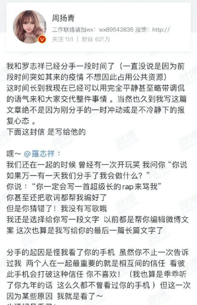 2 成果没料到两个东说念主,没能走进婚配的殿堂。 2020年4月,周扬青一个“大锤”,曝光了罗志祥的真面目: 时阐述决巨匠。